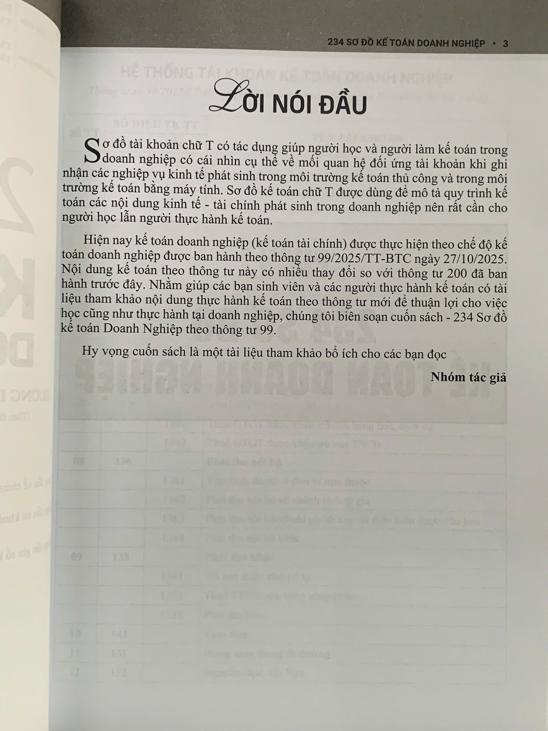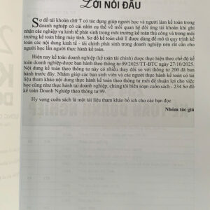 Hiện nay kế toán doanh nghiệp (kế toán tài chính) được thực hiện theo chế độ kế toán doanh nghiệp được ban hành theo Thông tư 99/2025/TT-BTC ngày 27/10/2025. Nội dung kế toán theo thông tư này có nhiều thay đổi so với Thông tư 200 đã ban hành trước đây. Nhằm giúp các bạn sinh viên và các người thực hành kế toán có tài liệu tham khảo nội dung thực hành kế toán theo thông tư mới để thuận lợi cho việc học cũng như thực hành tại doanh nghiệp, chúng tôi biên soạn cuốn sách – 234 Sơ đồ kế toán Doanh nghiệp theo Thông tư 99.