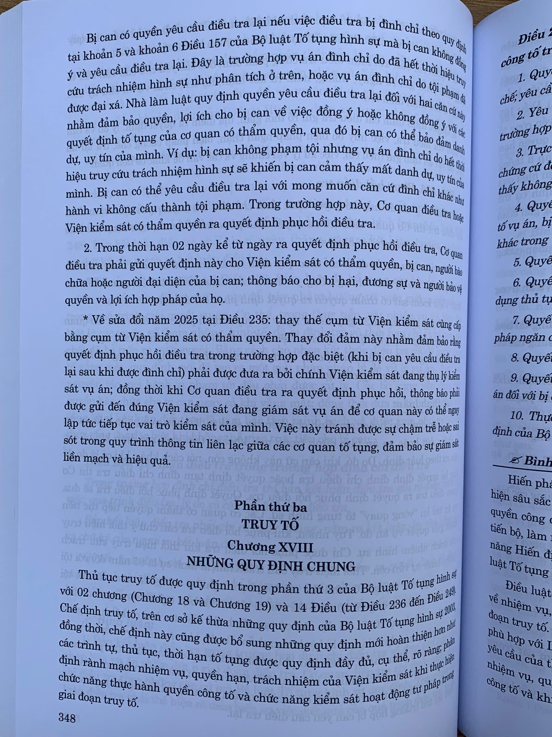 Đến năm 2025, trên cơ sở những thay đổi toàn diện về hệ thống phân cấp tổ chức chính quyền nói chung và tổ chức bộ máy các cơ quan tư pháp nói riêng; cùng các vướng mắc, bất cập mới phát sinh trong các quy định, gây khó khăn cho các cơ quan tiến hành tố tụng và người tham gia tố tụng đã một lần nữa đặt ra những yêu cầu mới về sửa đổi Bộ luật Tố tụng hình sự. Cụ thể, những sửa đổi lần này tập trung vào việc hoàn thiện cơ sở pháp lý để bảo đảm phù hợp với tên gọi, thẩm quyền, nhiệm vụ, quyền hạn của các cơ quan, người có thẩm quyền tiến hành tố tụng hình sự theo phương án sắp xếp, tinh gọn bộ máy đã được cấp có thẩm quyền phê duyệt; bảo đảm giải quyết kịp thời một số vấn đề cấp bách phát sinh từ thực tiễn phát sinh liên quan đến thi hành án tử hình, thủ tục điều tra, truy tố vắng mặt.