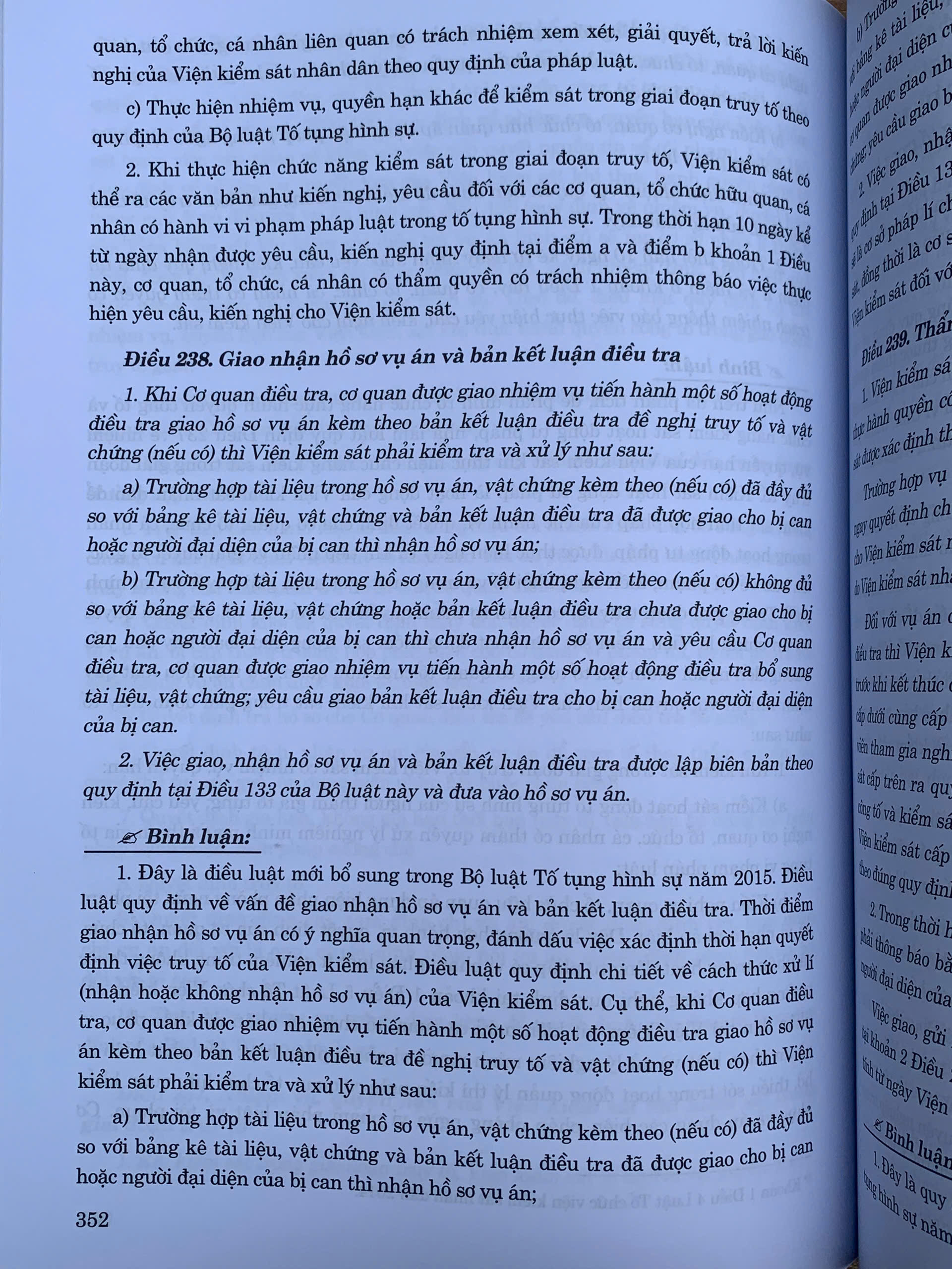 Bộ luật Tố tụng hình sự năm 2015 được Quốc hội khóa XIII, kỳ họp thứ 10 thông qua ngày 27/11/2015, có hiệu lực từ ngày 01/01/2018. So với Bộ luật Tố tụng hình sự năm 2003, Bộ luật Tố tụng hình sự năm 2015 gồm 510 điều, được bố cục thành 9 phần, 36 chương, trong đó, bổ sung mới 176 điều, sửa đổi 317 điều, giữ nguyên 17 điều, bãi bỏ 26 điều. Đây là Bộ luật quan trọng liên quan trực tiếp đến công cuộc đấu tranh chống tội phạm, đến các quyền cơ bản nhất của con người, của công dân, do đó yêu cầu đặt ra được quán triệt trong suốt quá trình soạn thảo là phải thể chế hóa đầy đủ, sâu sắc chủ trương cải cách tư pháp của Đảng, Hiến pháp năm 2013, phải thực sự công tâm, khách quan, vì cuộc sống bình yên của nhân dân, vì những giá trị văn minh, tiến bộ của nền tư pháp. Có thể nói, việc ban hành Bộ luật Tố tụng hình sự năm 2015 là một bước phát triển mới cao hơn về tư tưởng và kỹ thuật lập pháp trong lĩnh vực tố tụng hình sự ở nước ta.