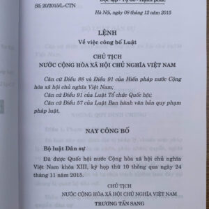 Bộ luật Dân sự 2015 là nền tảng quan trọng của hệ thống pháp luật Việt Nam, quy định những chuẩn mực về quyền, nghĩa vụ và cách ứng xử giữa cá nhân, pháp nhân trong đời sống xã hội. Được Quốc hội khóa XIII thông qua ngày 24/11/2015 và có hiệu lực từ 01/01/2017, bộ luật này được xem là “luật của mọi người, cho mọi người”.