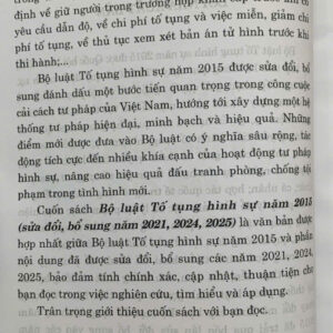 Cuốn sách “Bộ luật Tố tụng hình sự năm 2015 (sửa đổi, bổ sung năm 2021, 2024, 2025)” là văn bản được hợp nhất giữa Bộ luật Tố tụng hình sự năm 2015 và phần nội dung đã được sửa đổi, bổ sung các năm 2021, 2024, 2025, bảo đảm tính chính xác, cập nhật, thuận tiện cho bạn đọc trong việc nghiên cứu, tìm hiểu và áp dụng.