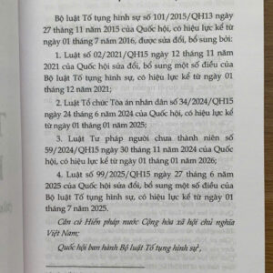 Đây là phiên bản cập nhật đầy đủ và mới nhất, giúp bạn đọc dễ dàng tra cứu, áp dụng thống nhất trong thực tiễn điều tra, truy tố, xét xử và thi hành án hình sự.