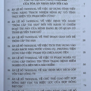 Đồng thời, đối với những bạn đọc chỉ có nhu cầu sử dụng riêng các án lệ và thông tư liên tịch của năm 2025, thì đây cũng là cuốn sách phù hợp, giúp tiếp cận nhanh chóng và tập trung vào nội dung mới nhất.