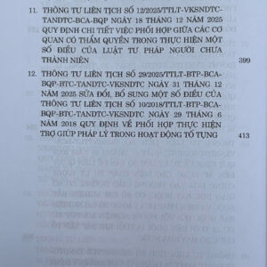 - THÔNG TƯ LIÊN TỊCH SỐ 29/2025/TTLT-BTP-BCA-BQP-BTC-TANDTC-VKSNDTC NGÀY 31 THÁNG 12 NĂM 2025 SỬA ĐỔI, BỔ SUNG MỘT SỐ ĐIỀU CỦA THÔNG TƯ LIÊN TỊCH SỐ 10/2018/TTLT-BTP-BCA-BQP-BTC-TANDTC-VKSNDTC NGÀY 29 THÁNG 6 NĂM 2018 QUY ĐỊNH VỀ PHỐI HỢP THỰC HIỆN TRỢ GIÚP PHÁP LÝ TRONG HOẠT ĐỘNG TỐ TỤNG ………. 413