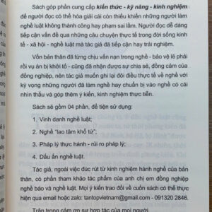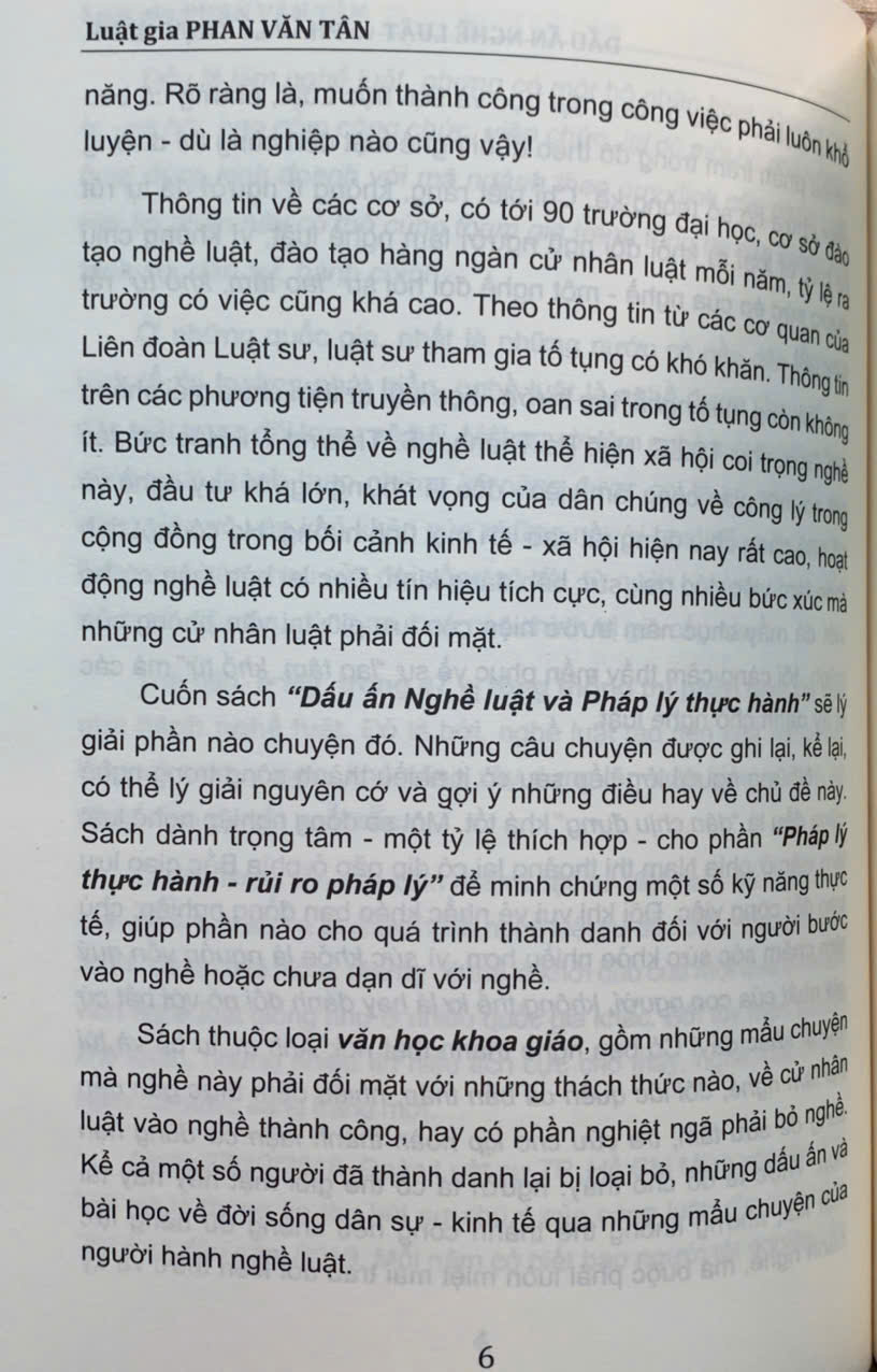 Từ trải nghiệm nhiều năm trong nghề, tác giả biên soạn cuốn “Dấu ấn nghề luật và Pháp lý thực hành” như một lời tri ân, một ghi chép chân thành gửi đến đồng nghiệp và những người yêu mến lĩnh vực pháp lý. Sách không chỉ kể lại các câu chuyện thật về nghề, mà còn chia sẻ kinh nghiệm, bài học, và những tình huống pháp lý thực tiễn trong công việc hàng ngày.