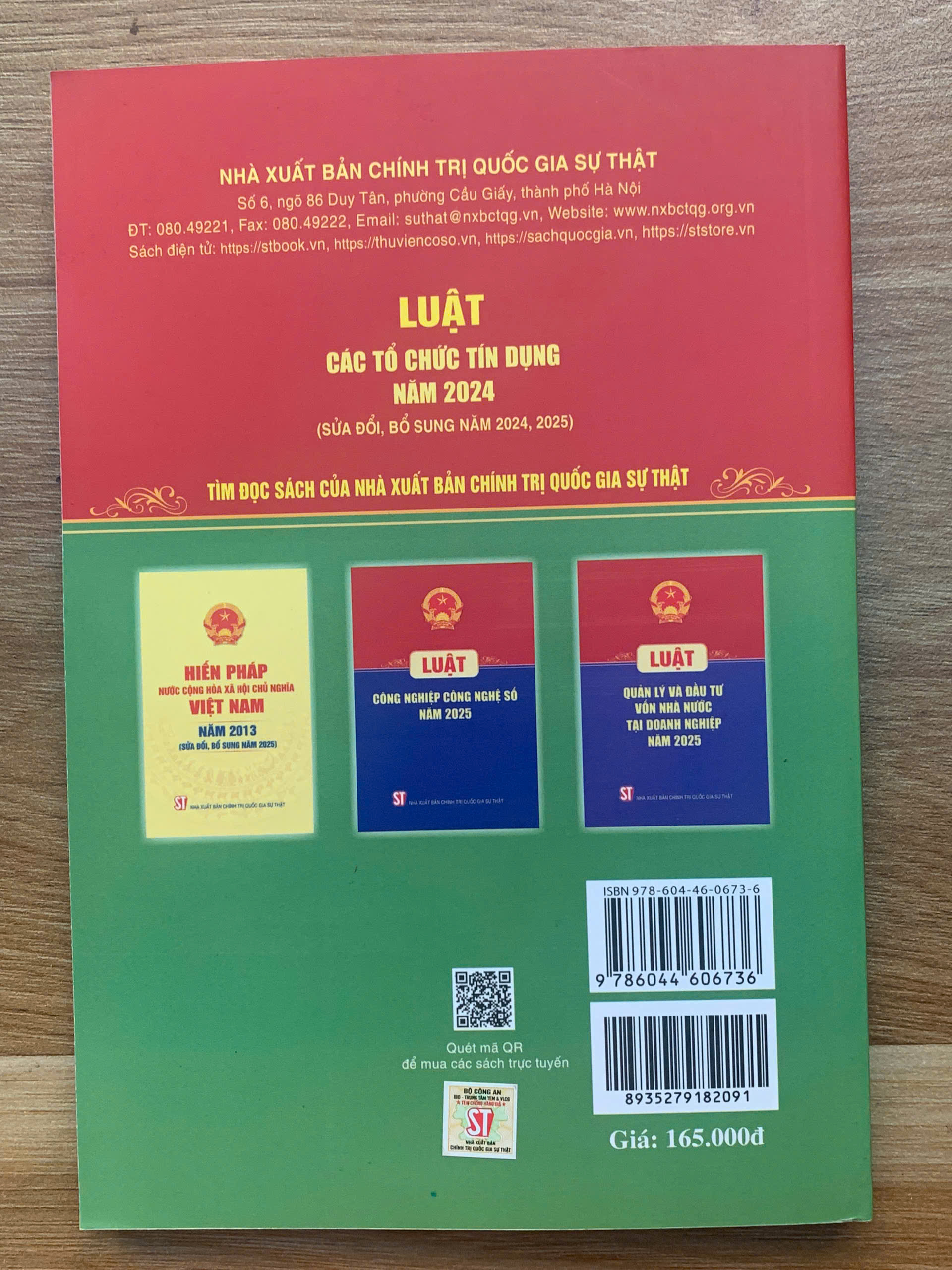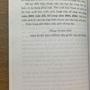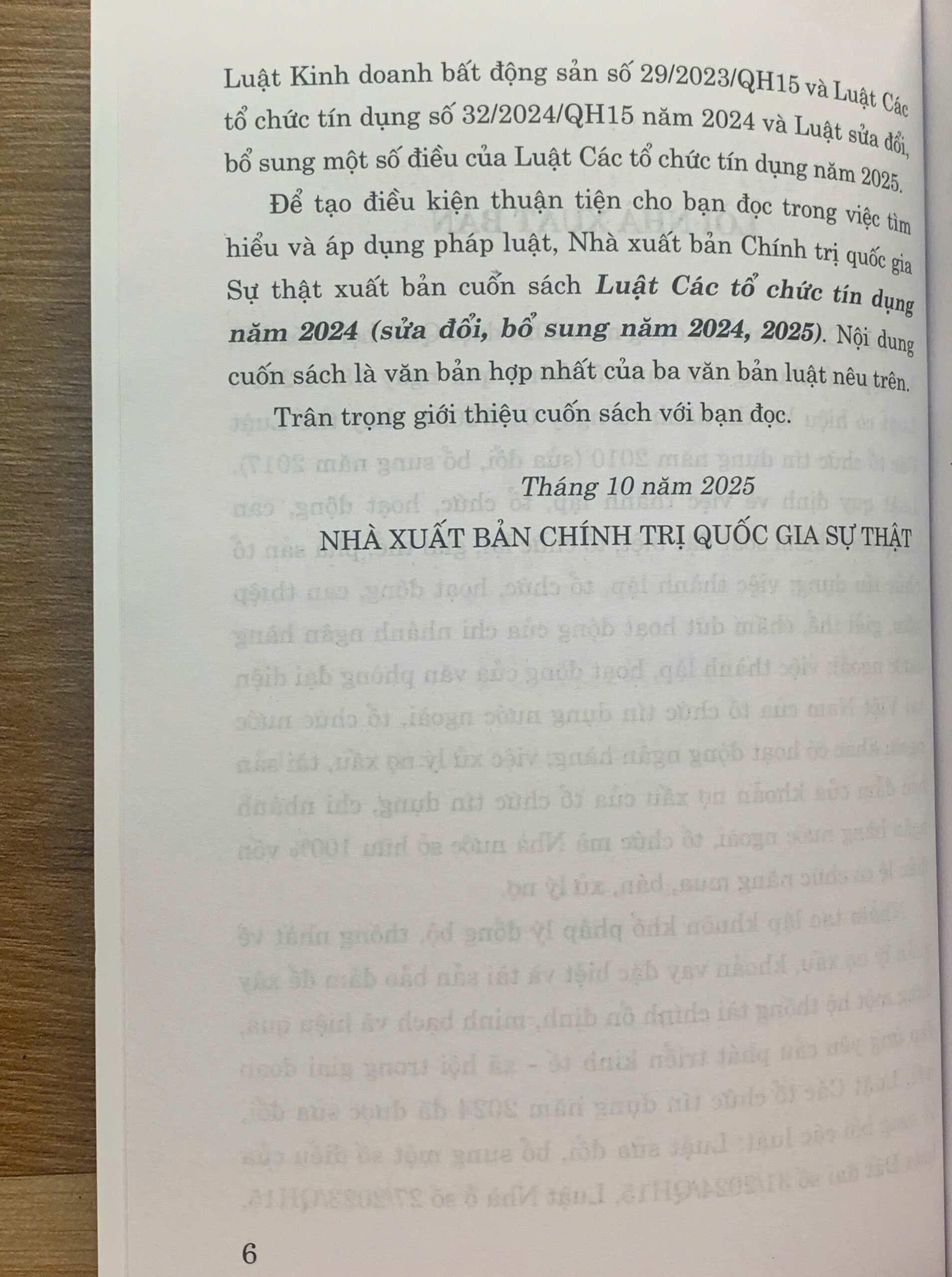 Để tạo điều kiện thuận tiện cho bạn đọc trong việc tìm hiểu và áp dụng pháp luật, Nhà xuất bản Chính trị quốc gia Sự thật xuất bản cuốn sách Luật Các tổ chức tín dụng năm 2024 (sửa đổi, bổ sung năm 2024, 2025). Nội dung cuốn sách là văn bản hợp nhất của ba văn bản luật nêu trên. Trân trọng giới thiệu cuốn sách với bạn đọc.