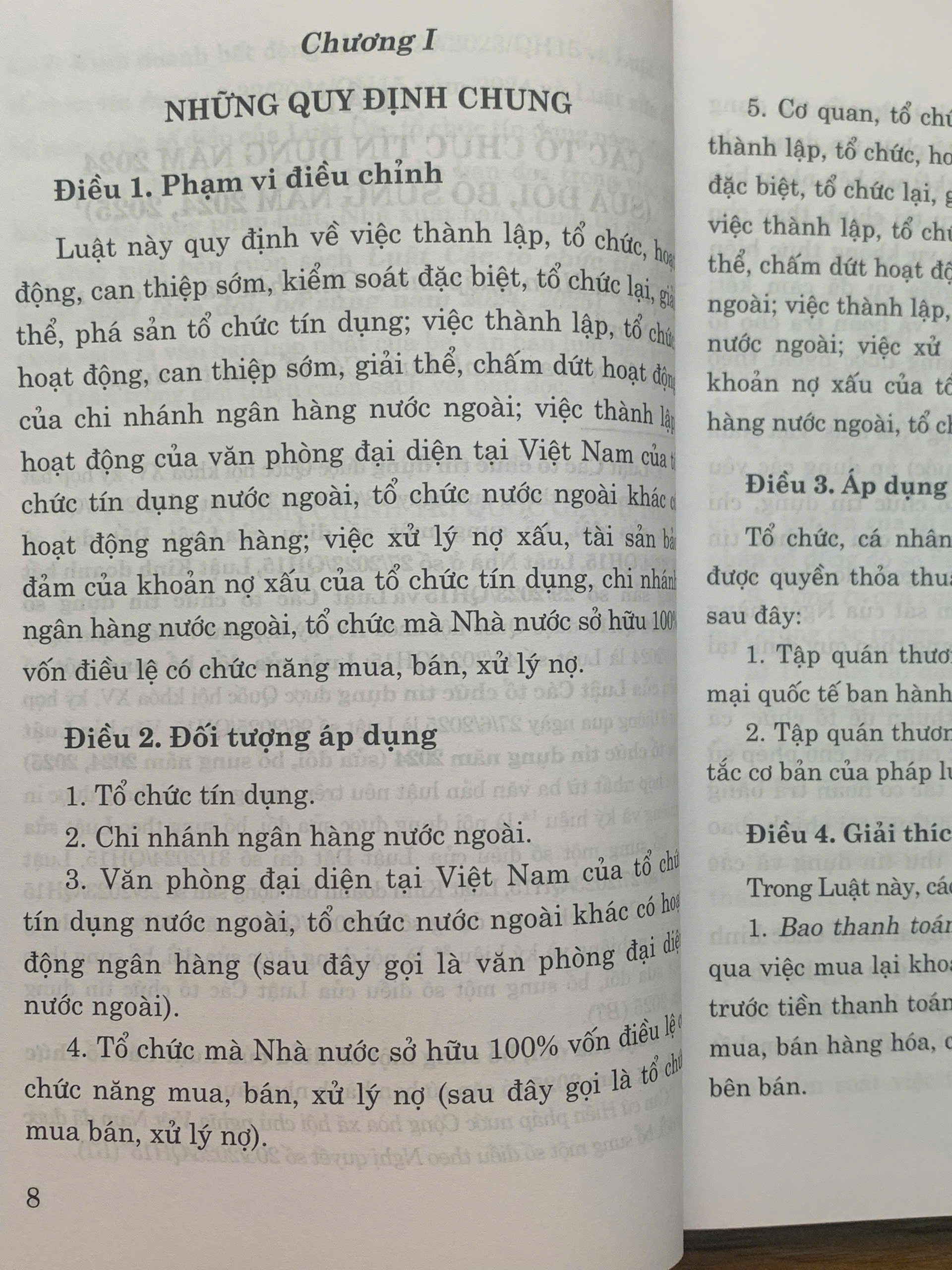 Luật quy định về việc thành lập, tổ chức, hoạt động, can thiệp sớm, kiểm soát đặc biệt, tổ chức lại, giải thể, phá sản tổ chức tín dụng; việc thành lập, tổ chức, hoạt động, can thiệp sớm, giải thể, chấm dứt hoạt động của chi nhánh ngân hàng nước ngoài; việc thành lập, hoạt động của văn phòng đại diện tại Việt Nam của tổ chức tín dụng nước ngoài, tổ chức nước ngoài khác có hoạt động ngân hàng; việc xử lý nợ xấu, tài sản bảo đảm của khoản nợ xấu của tổ chức tín dụng, chi nhánh ngân hàng nước ngoài, tổ chức mà Nhà nước sở hữu 100% vốn điều lệ có chức năng mua, bán, xử lý nợ.
