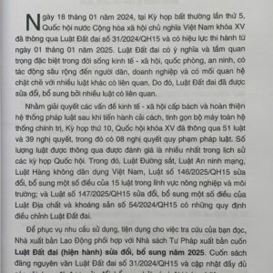 Ngày 18 tháng 01 năm 2024, tại Kỳ họp bất thường lần thứ 5, Quốc hội nước Cộng hòa xã hội chủ nghĩa Việt Nam khóa XV đã thông qua Luật Đất đai số 31/2024/QH15 và có hiệu lực thi hành từ ngày 01 tháng 01 năm 2025. Luật Đất đai có ý nghĩa và tầm quan trọng đặc biệt trong đời sống kinh tế – xã hội, quốc phòng, an ninh, có tác động sâu rộng đến người dân, doanh nghiệp và có mối quan hệ chặt chẽ với nhiều luật khác có liên quan. Do đó, Luật Đất đai đã được sửa đổi, bổ sung bởi nhiều luật có liên quan.