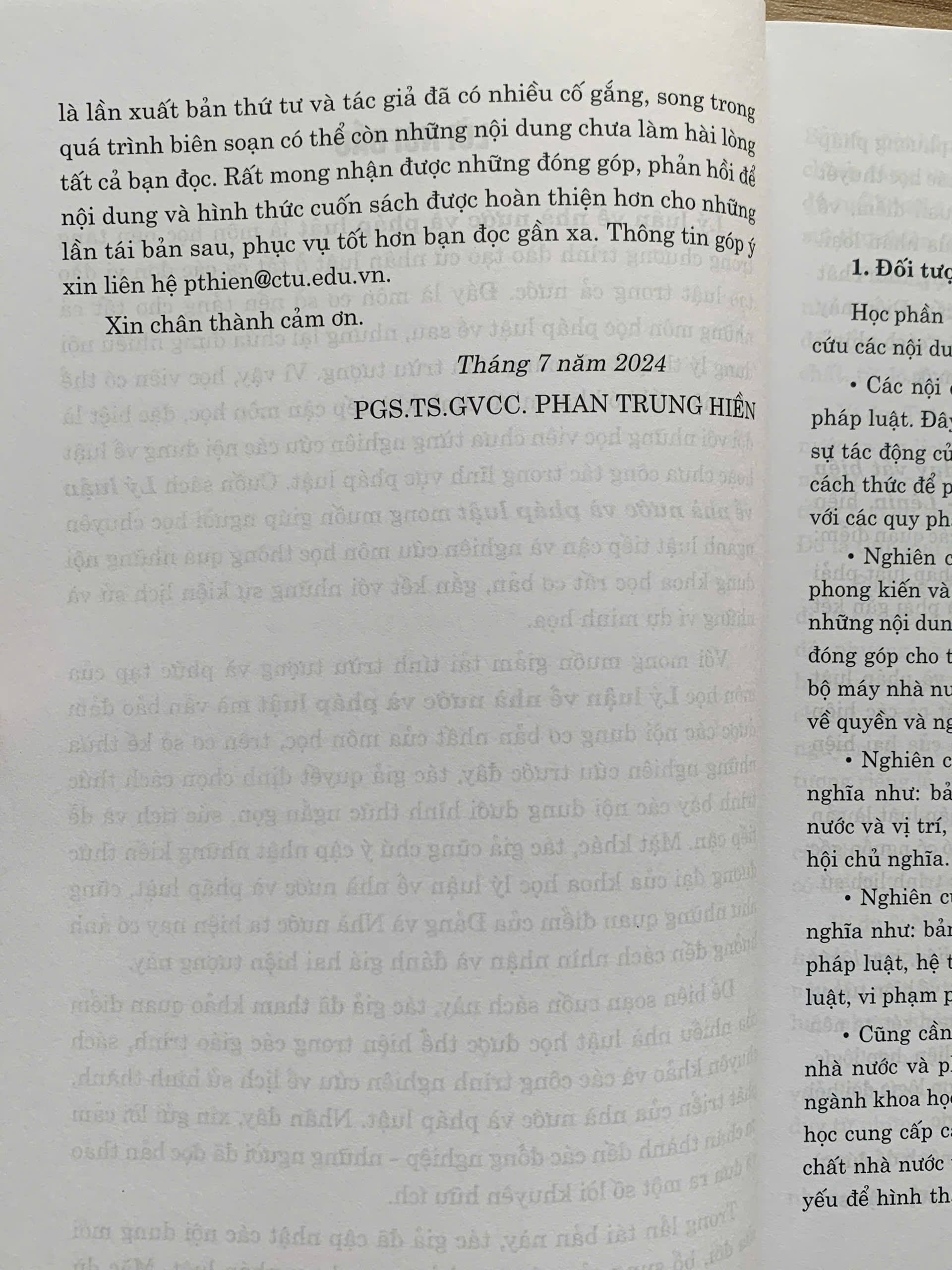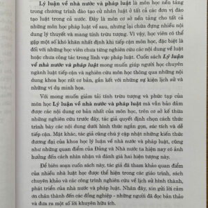 Nhằm đáp ứng yêu cầu nêu trên của đông đảo sinh viên và các cơ sở đào tạo chuyên ngành luật, Nhà xuất bản Chính trị quốc gia Sự thật xuất bản cuốn sách Lý luận về nhà nước và pháp luật, gồm hai quyển, do PGS.TS.GVCC. Phan Trung Hiền – Phó Trưởng Khoa Luật, Trường Đại học Cần Thơ biên soạn. Nay để phù hợp với tình hình kinh tế – xã hội của đất nước, đặc biệt là bổ sung và hoàn thiện hệ thống pháp luật nước ta trong thời gian qua, cùng với cuốn sách Lý luận về nhà nước và pháp luật (quyển 1) cuốn sách Lý luận về nhà nước và pháp luật (quyển 2) tiếp tục được sửa chữa, bổ sung một số nội dung mới trong lần tái bản thứ ba này.